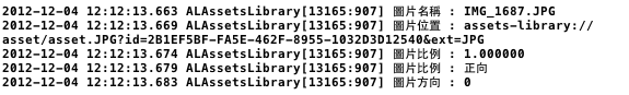 | 透過 AssetsLibrary 取得檔案相關資訊的執行結果 |